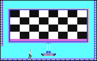 Elvin's stronghold contains two code rooms where you can earn additional passwords. Walk up to the console and push the joystick forward as if you were searching it. A sequence of squares will flash on the wall, each with a musical note, and a white glove will appear. Use the glove to touch each square in a sequence so that the notes are sorted in ascending order (from low to high)